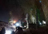 走入廳中,石柱有的象阿佤少女,有的象巨型靈芝,也有的象彌勒端坐,形象逼真,栩栩如生;地上石球、石花晶瑩碧透,令人難以置信;塔林廳位于支洞300米處,廳中有數十支石筍、石柱,高約8—15米,其中有一石柱高約20米,根粗1.6米,頂天立地,石筍上小下大,其上石花遍布,若一座座石塔,潔白晶瑩,令人留戀往返。