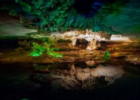 把洞也叫火把石洞,洞中有岔洞與月亮洞相通,現已被部分開發(fā),洞中有大大小小的廳堂,斷斷續(xù)續(xù)數個清潭,有人間天堂、天池、八百羅漢拜觀音等30多個景點,火把洞內石筍如林,鐘乳石琳瑯滿目,在燈光的映襯下,彷如進入游戲中的魔幻世界。