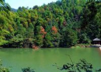 白龍洞----爬山而上,約20多分鐘即到。洞內流出泉水形成天然瀑布近百米高,瀑底水濺銀花,綠蔭環抱綠玉,潭清見底,景色天成。