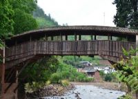 高11.33米,橋身建筑采用木方交錯(cuò)架疊,從兩岸橋墩層層向河中心挑出,如樓閣建筑中的斗拱,在兩端斗拱向中伸延相距9米時(shí),再用5根橫梁銜接,上鋪木板組成橋面,并于橋身上復(fù)蓋房頂。橋兩側(cè)用木板遮擋,橋內(nèi)置兩排木凳供行人歇息。在東面橋亭內(nèi)現(xiàn)存清乾隆四十七年(1782年)的《云龍州官告示碑》頒布行人馬幫等過(guò)橋規(guī)則。現(xiàn)該橋保護(hù)完好。1988年公布為云龍縣文物保護(hù)單位。