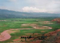紅河源的最源頭部分稱羊子江。羊子江經(jīng)峽谷流入巍山盆地落馬處以下稱西河。整條30多公里的西河全部靠在西山腳下盆壩的西側(cè),沒有哪個(gè)地段是跑到東面去的,為名副其實(shí)的西河。這條河又稱瓜江,有“瓜江碧玉”的美稱,由于氣候溫和、土地肥沃,自古以盛產(chǎn)南瓜、冬瓜、絲瓜等各種瓜類而聞名。整個(gè)壩川是瓜果飄香,魚菱滿川的地方,所以孕育出來一個(gè)盛極一時(shí)的南詔古國和南詔文明。